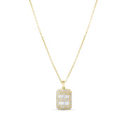 0.73 gram ağırlığındaki 14 ayar altın, hem hafifliği hem de şık görünümü garanti eder. Altının sıcak tonu, pırlantaların ışıltısını daha da vurgulayarak kolyeye zarif bir dokunuş katıyor. Baget kesim pırlantalar, modern ve sofistike bir tarzı temsil ederek bu kolyeyi özel kılıyor.