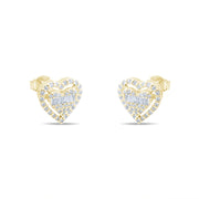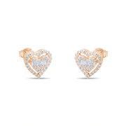 Bu özel  küpeler, kalp motifleriyle romantik bir hava taşımaktadır. küpelerin ortasında 0.09 karat baget pırlanta, kalbi çevreleyen kısımda ise 0.14 karat pırlanta yer almaktadır. Toplamda 0.23 karat pırlanta ile süslenen bu küpeler, ışıltılarıyla göz kamaştırır.