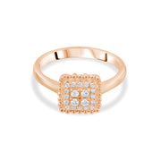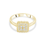 Bu özel yüzük, ışıltısı ve zarafetiyle büyüleyen 0.23 karat pırlanta ile taçlandırılmıştır. H renk ve VS1 berraklığındaki pırlanta, yüzüğe değer katan en önemli özelliklerden biridir. Göz kamaştırıcı ışıltısıyla her ortamda dikkat çeken bu yüzük, 14 ayar altının zarafetiyle birleşerek eşsiz bir parça haline gelmiştir.
