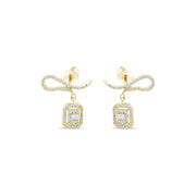 Bu özel küpeler, ortalarında 0.08 karat baget pırlantalar ve çevrelerinde 0.50 karat pırlanta olmak üzere toplamda 0.58 karat pırlanta ile süslenmiştir. Pırlantaların ışıltısı, küpelere sofistike bir hava katmaktadır. Bu küpeler, hem günlük kullanım hem de özel günler için ideal bir seçimdir.