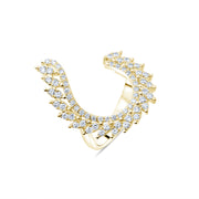 Bu özel tasarım yüzük, markiz ve yuvarlak kesim pırlantaların ışıltılı kombinasyonuyla göz kamaştırıyor. Yüzükte 0.32 karat markiz kesim pırlanta ve 0.32 karat yuvarlak kesim pırlanta olmak üzere toplam 0.64 karat pırlanta bulunmaktadır. Her iki tür pırlanta da H renk ve VS1 berraklığına sahiptir, bu da pırlantaların yüksek kalitesini ve ışıltısını vurgular. Bu muhteşem yüzük, 5.00 gram 18 ayar altından üretilmiştir.